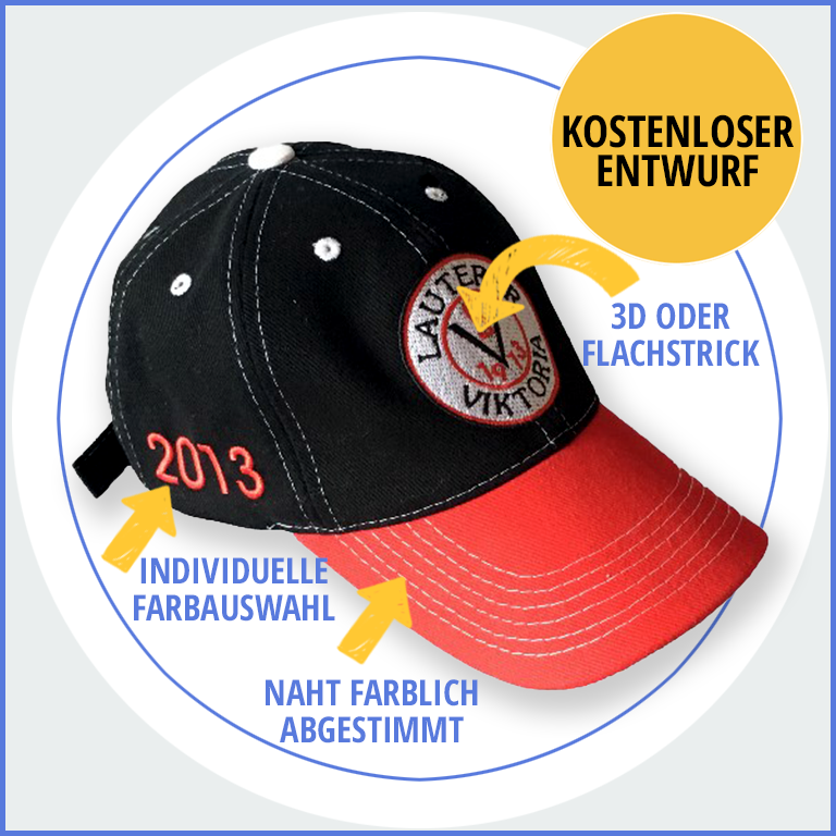 Als Werbeträger für Firmen und auch als Fanartikel ist das Cap wohl einer der erfolgreichsten Artikel im Textilbereich. Stellen Sie ein einzigartiges Cap ganz nach Ihren Vorstellungen zusammen. Unsere erfahrenen Designer stehen Ihnen dabei gerne mit Rat und Tat zur Seite und fertigen vorab einen Entwurf zur Freigabe.
