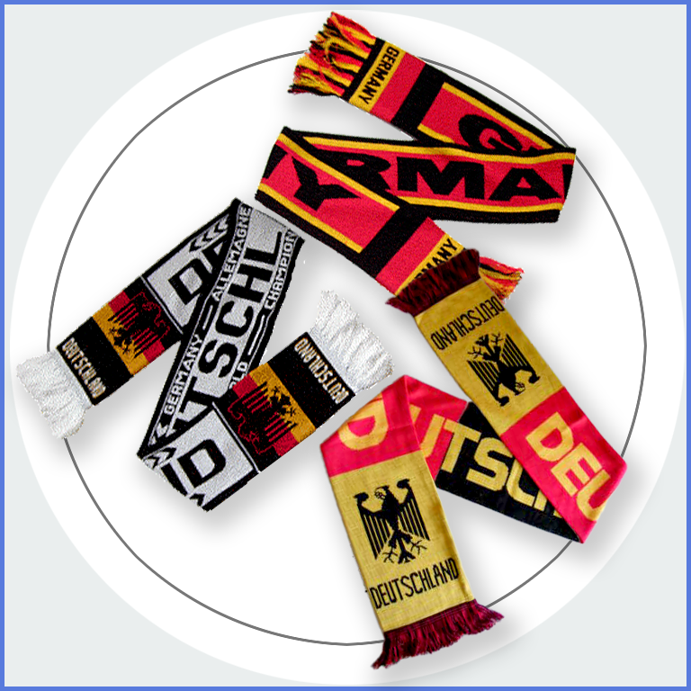 Wir fertigen individuelle Deutschland Fanschals in Ihrem Wunschdesign. Oder auch in einem unserer Standarddesigns mit Einarbeitung Ihres Logos/Wappens oder Ihres Firmen- bzw. Vereinsnamens.