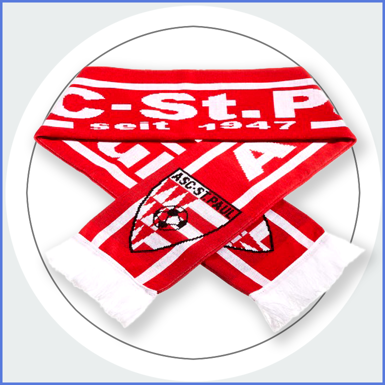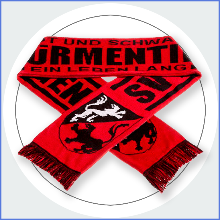 Übrigens: Vereinsschals können natürlich auch Balkenschals mit Stickerei oder Seidenfanschals sein. Wir beraten Sie gerne!