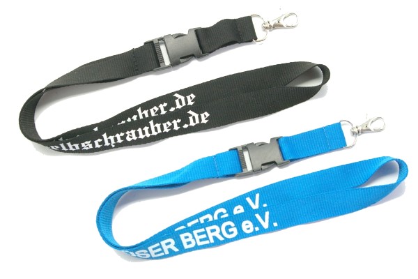 Bedruckte Schlüsselbänder, Lanyards oder Keyholder sind ein preiswerter und sehr wirkungsvoller Werbeartikel für Firmen und Vereine. Aber auch in gut sortierten Fanshops sollten bedruckte Schlüsselbänder oder Keyholder ein fester Bestand sein. Unsere Schlüsselbänder aus hochwertigem Polyestergewebe garantieren eine lange, strapazierfähige Lebensdauer. Durch Siebdruckverfahren können auch aufwendige Logos auf Ihren Schlüsselbändern angebracht werden. Selbst feine Details können wir auf den Schlüsselbändern oder Lanyards darstellen.